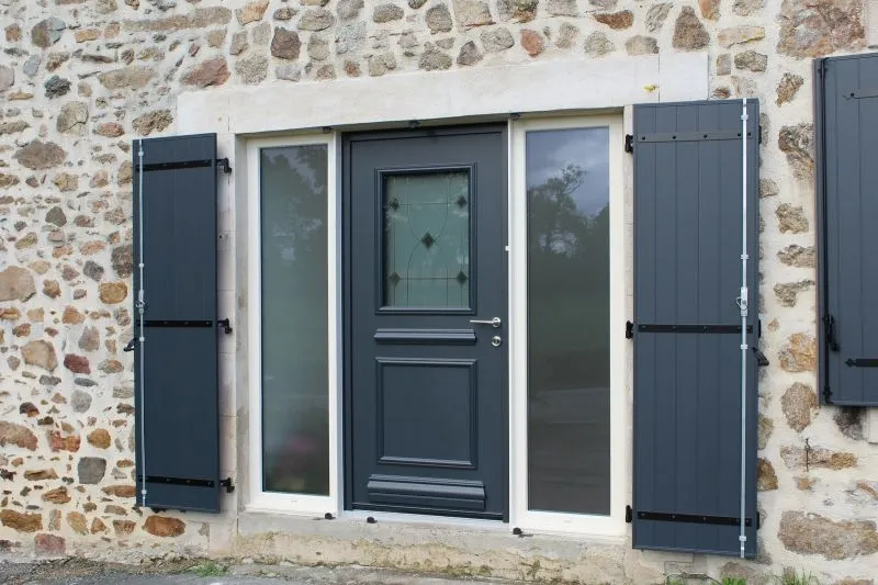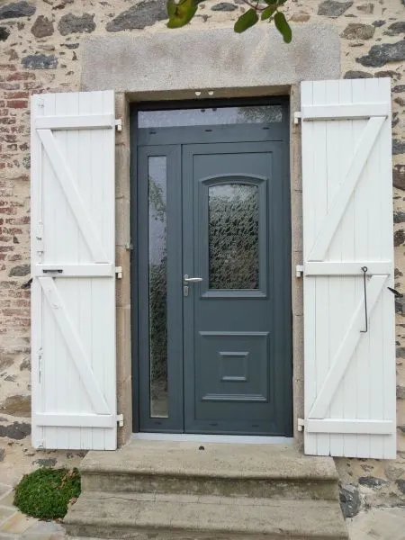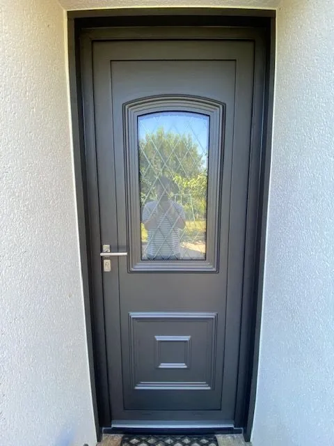 Porte d'entrée en Alu, vitrage isolant, protection renforcé Sereilhac