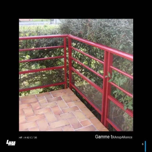 Garde - corps en Aluminium, vitré entre traverses - vitrage feuilleté transparent -