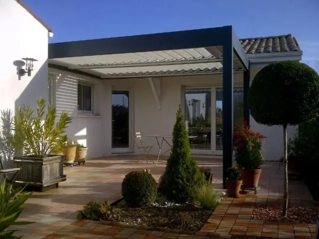 L’entreprise Pierre ROBERT vous propose une large gamme de Pergolas Bioclimatiques sur mesure. Elle vous permet de couvrir votre terrasse sans assombrir votre maison, grâce à des lames en aluminium qui s’orientent selon vos envies CE QUI PERMET UNE VENTILATION NATURELLE, de plus la pergola bioclimatique vous protègera de la pluie efficacement en évacuant l’eau de la structure par ces chéneaux latéraux. Elle vous procurera entière satisfaction tant au niveau fonctionnalité que par son esthétique équilibrée et design. Elle conviendra parfaitement à votre style de maison, qu'elle soit moderne ou ancienne. Contactez – nous ! Nous avons la solution parfaite pour Inonder votre terrasse de fraicheur ! -