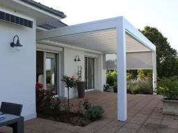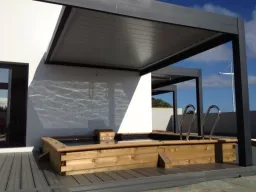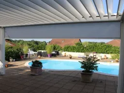 La pergola bioclimatique est une couverture de terrasse avec un remplissage de lames aluminium qui s'orientent à votre convenance.
