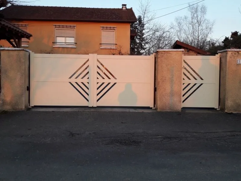 Portail à 2 battants + portillon en PVC BEIGE Réalisation ISLE 87170 -