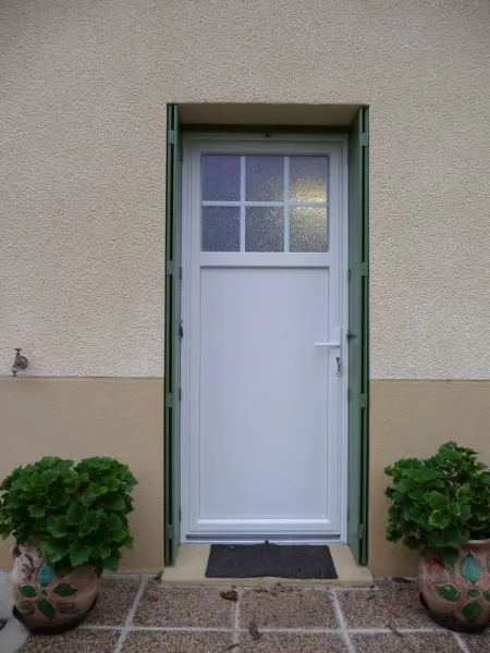 Porte d'entrée PVC BLANC avec semi-fixe -